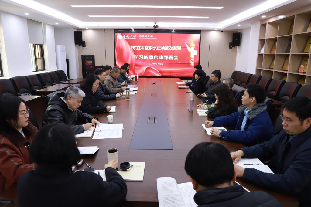 会议指出,在“十五五”开局起步之年,党中央决定在全党开展树立和践行正确政绩观学习教育,意义重大,全体党员干部要提高政治站位,深入学习领会习近平总书记关于树立和践行正确政绩观学习教育的重要讲话和重要指示精神,深刻认识开展学习教育的重大意义,切实增强树立和践行正确政绩观的思想自觉和行动自觉,在深化学习、真查实改、开门教育上下功夫,推动学院“十五五”开好局、起好步,切实把学习教育成果转化为破解学科发展难题的实际成效;各支部要将学习教育与推进中心工作结合起来,主动思考学院“十五五”发展目标与任务,增强学习教育的针对性和实效性,同时要强化宣传引导,力戒形式主义,以扎实的学习教育成果推动学院高质量发展迈上新台阶。
